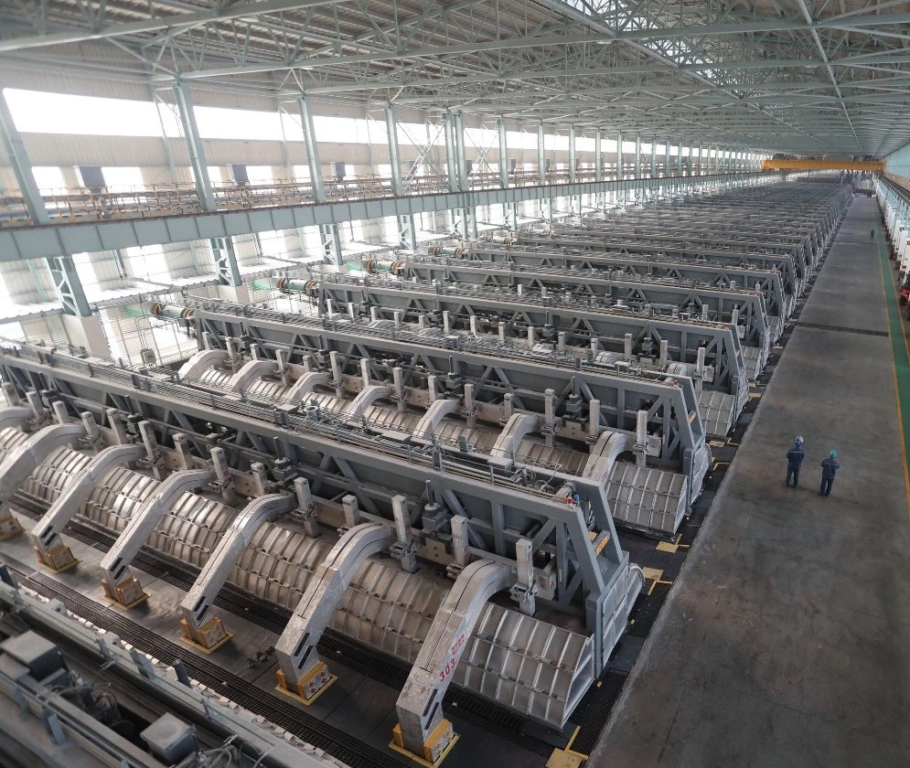 中國(guó)宏橋原鋁生產(chǎn)全部采用電流強(qiáng)度為400KA以上的大型陽(yáng)極預(yù)焙電解槽。其全球首條全系列600KA特大型陽(yáng)極預(yù)焙電解槽于2014年12月投產(chǎn)運(yùn)行,具有單槽容量最大、噸鋁投資最少、液態(tài)鋁質(zhì)量最好、能耗最低、生產(chǎn)環(huán)境最優(yōu)、自動(dòng)化程度最高、用工最少的優(yōu)勢(shì),在2015年6月5日通過了中國(guó)有色金屬工業(yè)協(xié)會(huì)科技成果評(píng)價(jià),整體技術(shù)達(dá)到了國(guó)際領(lǐng)先水平。